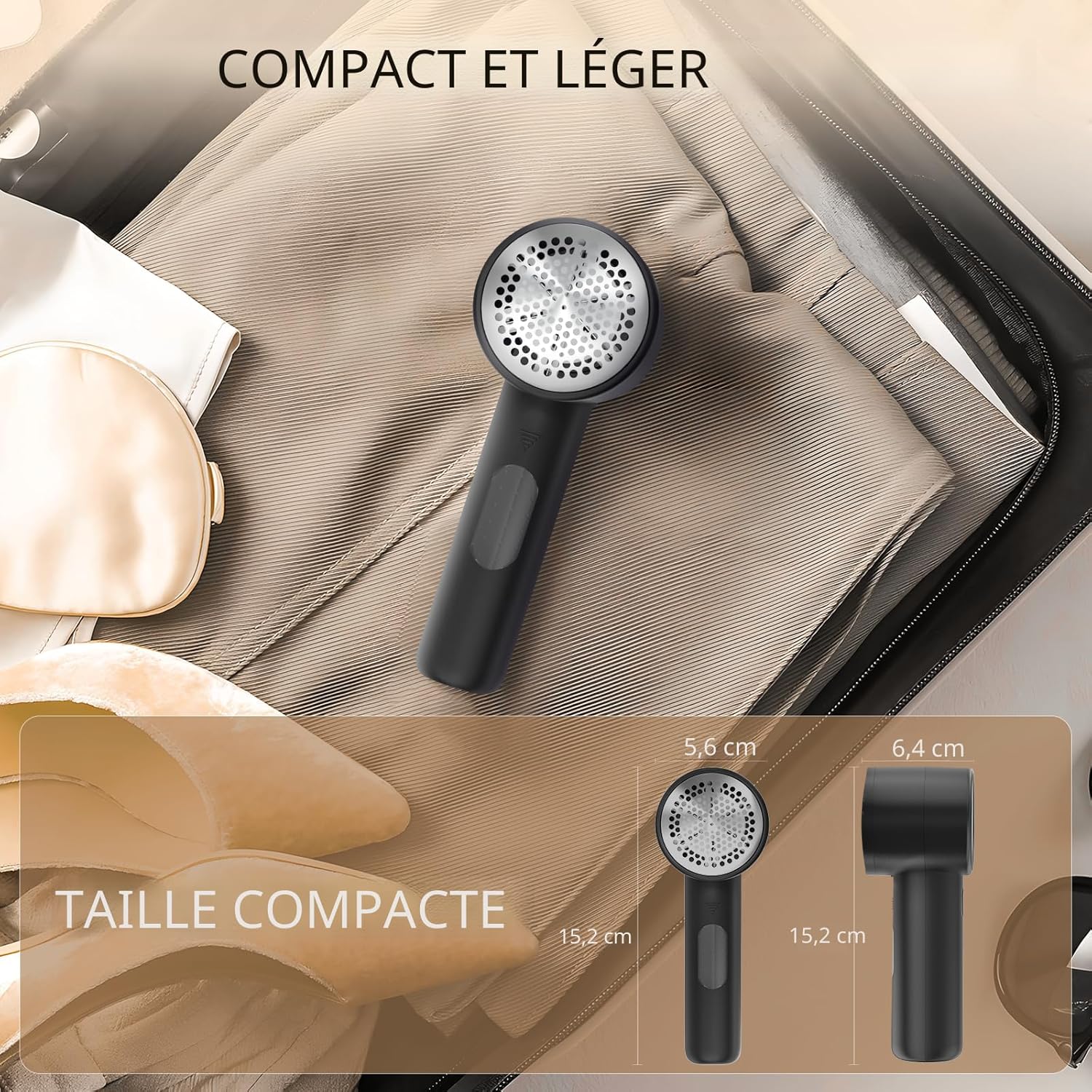 - Technologie de coupe haute précision : Équipé de lames tranchantes et sécurisées, il élimine efficacement les peluches, bouloches et fibres indésirables sans abîmer vos tissus. Vos vêtements retrouvent un aspect neuf dès la première utilisation